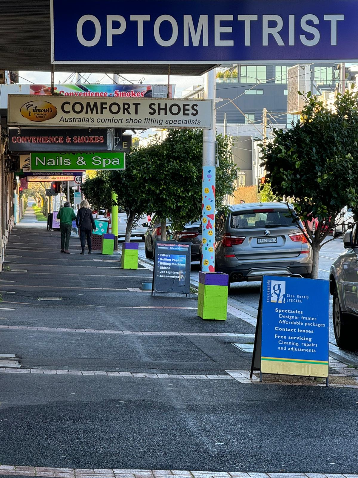 Colourful planter boxes have been rolled out along Glen Huntly shopping precinct to brighten up the shopping area. Thanks to all those that helped with the build of them, painting, transporting and planting out. We are going in the right direction to brighten up our area and advancing with small steps towards change.